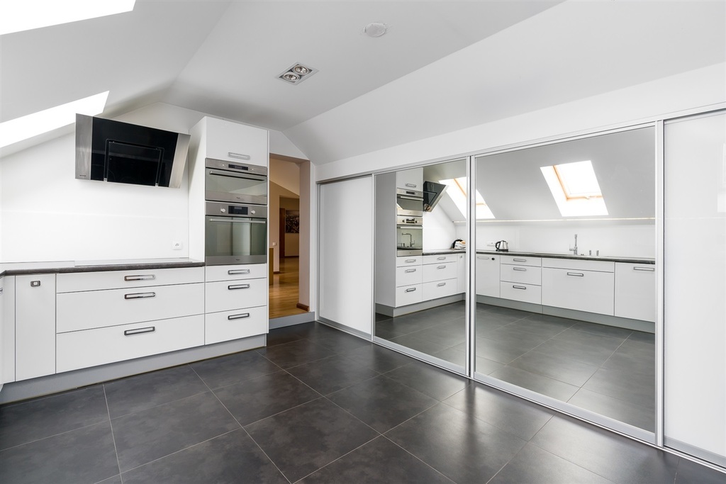 Pierwsze piętro całość wyłożona panelami podłogowymi z wyjątkiem łazienki oraz kuchni nr 2. W kuchni, jak i w łazience ogrzewanie podłogowe. Kuchnia na piętrze w całości zabudowana meblami wraz ze sprzętem AGD o łącznej wartości ponad  40 tys. zł.
