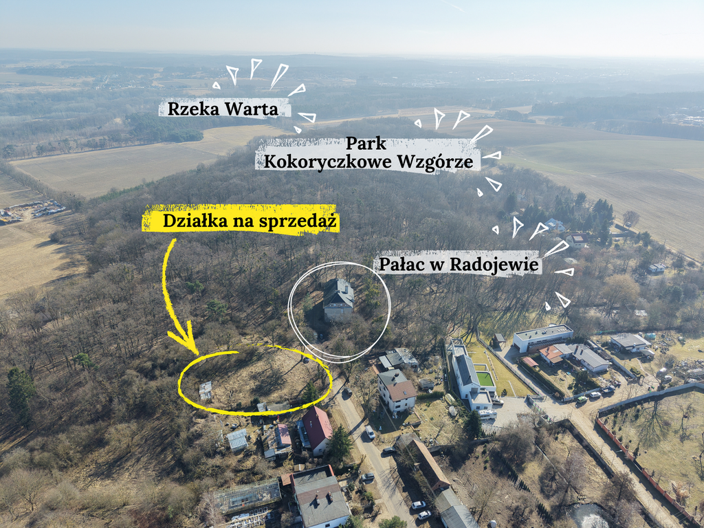 Na sprzedaż działka budowlana położona w Poznaniu przy ul. Podbiałowej (obręb Radojewo), północna część miasta. Teren dawnej wsi Radojewo, bezpośrednie sąsiedztwo pałacu rodziny von Treskow oraz założenia parkowego o nazwie Kokoryczkowe Wzgórze. Liczne ścieżki spacerowe, urozmaicona rzeźba terenu – tuż za płotem! Bliskość Warty.