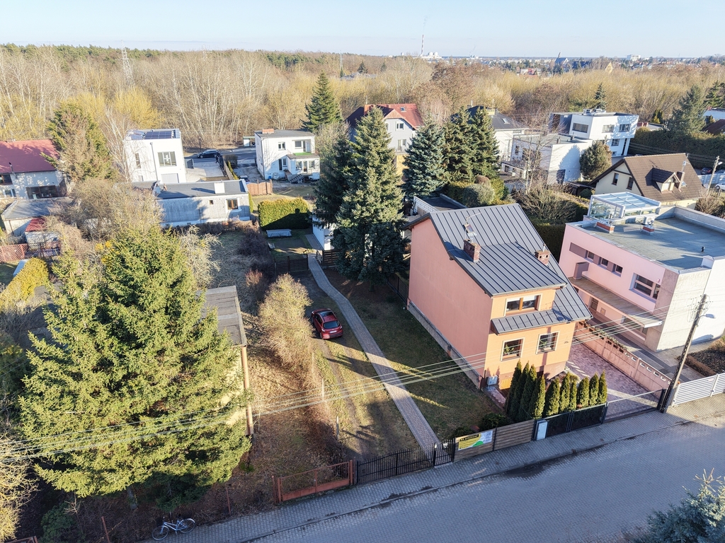 Działka budowlana przy Rezerwacie Żurawiec | cicha, zielona okolica i pełen dostęp do infrastruktury miejskiej | Blisko komunikacji (PST) | Niewielki dom z tyłu działki – z przeznaczeniem do zamieszkania, na pracownię, biuro lub zaplecze przyszłej budowy.