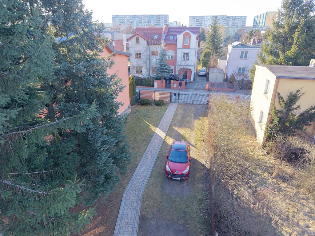 Od frontu miejsce na budowę wymarzonego domu w zabudowie bliźniaczej.